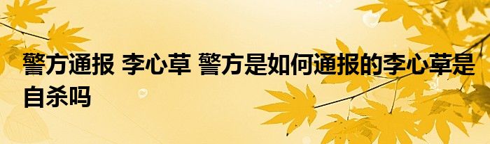 警方通报 李心草 警方是如何通报的李心草是自杀吗
