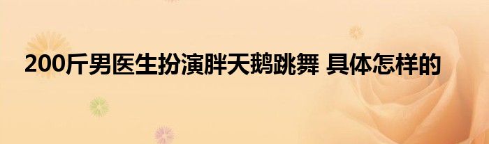 大家好.我是互联百科的羽儿,现在为大家解决以上200斤男医生扮演胖天鹅跳舞 具体怎样的的问题.
