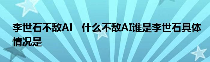 大家好.我是互联百科的羽儿,现在为大家解决以上李世石不敌AI 什么不敌AI谁是李世石具体情况是的问题.
