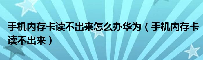 大家好,雨雨来为大家解答以上问题,手机内存卡读不出来怎么办华为,手机内存卡读不出来很多人还不知道,现在让我们一起来看看吧!