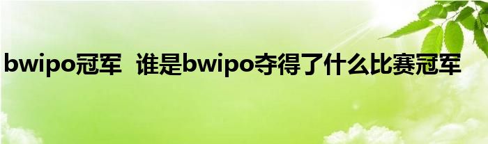 大家好.我是互联百科的羽儿,现在为大家解决以上bwipo冠军 谁是bwipo夺得了什么比赛冠军的问题.