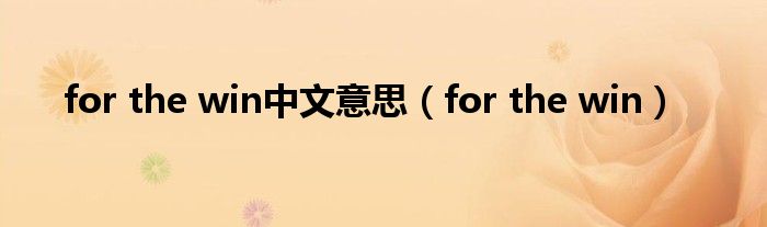 关于for the win中文意思,for the win这个很多人还不知道,今天菲菲来为大家解答以上的问题,现在让我们一起来看看吧!