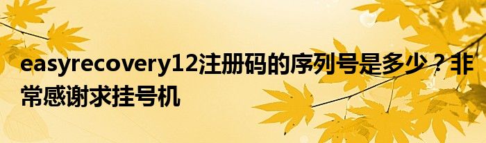 关于easyrecovery12注册码的序列号是多少?非常感谢求挂号机这个很多人还不知道,今天菲菲来为大家解答以上的问题,现在让我们一起来看看吧!