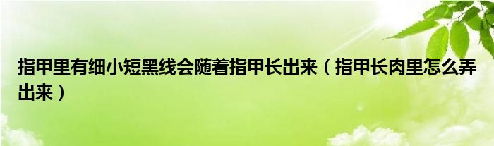 大家好,乐天来为大家解答以下的问题,指甲里有细小短黑线会随着指甲长出来,指甲长肉里怎么弄出来很多人还不知道,现在让我们一起来看看吧!
