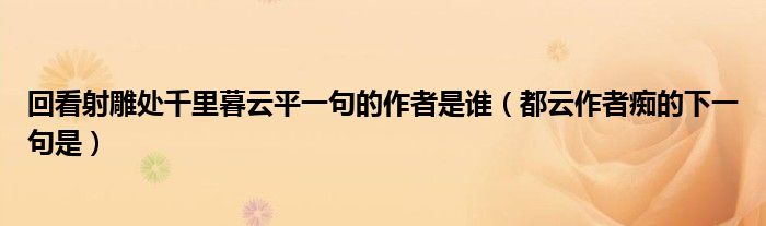 关于回看射雕处千里暮云平一句的作者是谁,都云作者痴的下一句是这个很多人还不知道,今天菲菲来为大家解答以上的问题,现在让我们一起来看看吧!