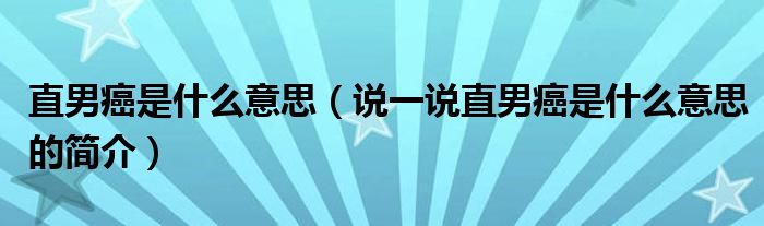 夏弥来为大家解答以下的问题,直男癌是什么意思,说一说直男癌是什么意思的简介,现在让我们一起来看看吧!