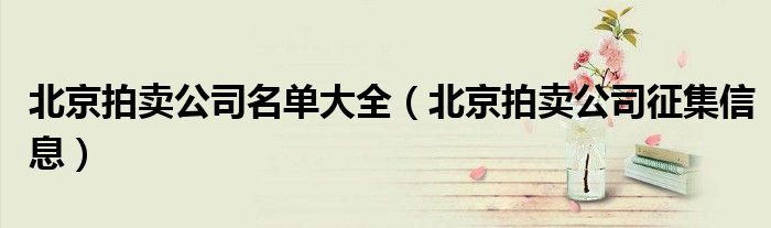 关于北京拍卖公司名单大全,北京拍卖公司征集信息这个很多人还不知道,今天菲菲来为大家解答以上的问题,现在让我们一起来看看吧!