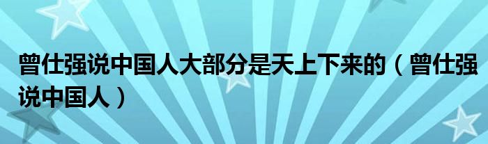 曾仕强说中国人大部分是天上下来的(曾仕强说中国人)