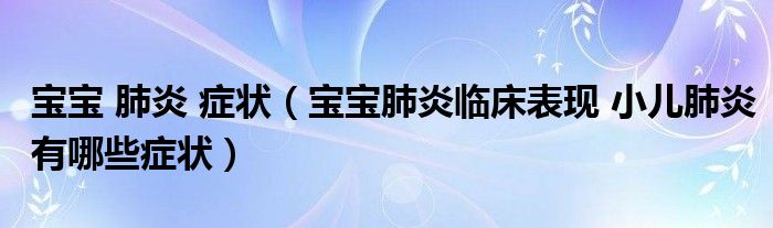 大家好,乐天来为大家解答以下的问题,宝宝 肺炎 症状,宝宝肺炎临床表现 小儿肺炎有哪些症状很多人还不知道,现在让我们一起来看看吧!