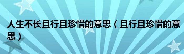 大家好,来宝来为大家解答以下问题,人生不长且行且珍惜的意思,且行且珍惜的意思很多人还不知道,今天让我们一起来看看吧!