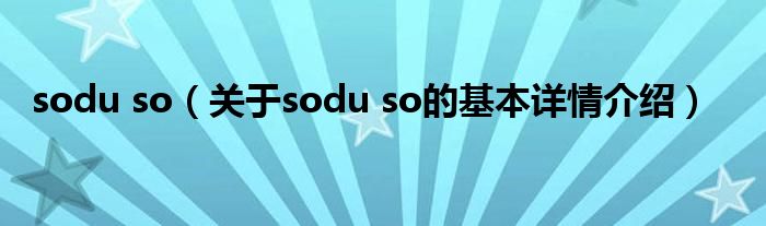 本文关于sodu so的基本详情介绍就讲解完毕,希望对大家有所帮助。