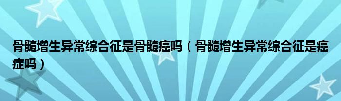 大家好,乐天来为大家解答以下的问题,骨髓增生异常综合征是骨髓癌吗,骨髓增生异常综合征是癌症吗很多人还不知道,现在让我们一起来看看吧!