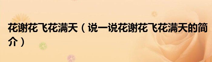 花谢花飞花满天(说一说花谢花飞花满天的简介)