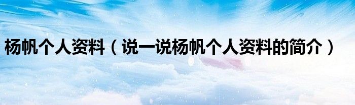 杨帆个人资料(说一说杨帆个人资料的简介)