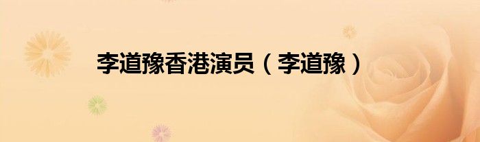 关于李道豫香港演员,李道豫这个很多人还不知道,今天菲菲来为大家解答以上的问题,现在让我们一起来看看吧!