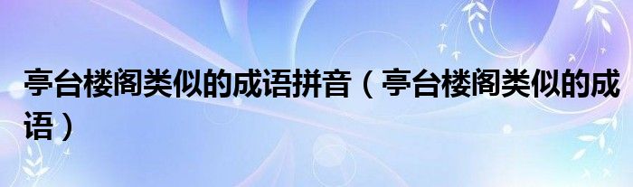 大家好,小晋来为大家解答以下问题,关于亭台楼阁类似的成语拼音,亭台楼阁类似的成语很多人还不知道,今天让我们一起来看看吧!