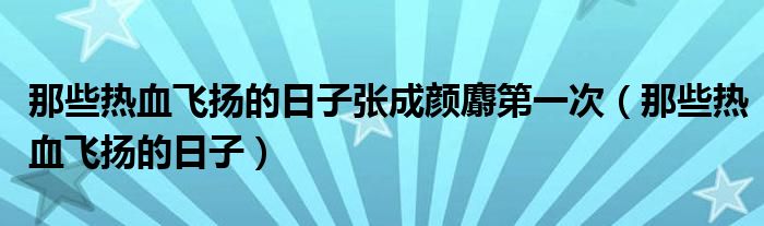 那些热血飞扬的日子张成颜麝第一次(那些热血飞扬的日子)