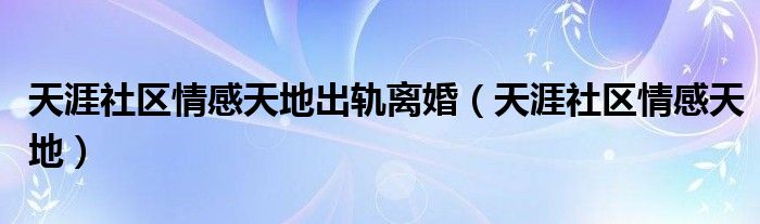 关于天涯社区情感天地出轨离婚,天涯社区情感天地这个很多人还不知道,今天菲菲来为大家解答以上的问题,现在让我们一起来看看吧!