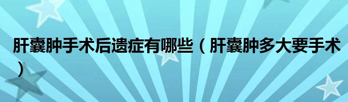 大家好,乐天来为大家解答以下的问题,肝囊肿手术后遗症有哪些,肝囊肿多大要手术很多人还不知道,现在让我们一起来看看吧!