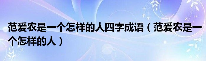 关于范爱农是一个怎样的人四字成语,范爱农是一个怎样的人这个很多人还不知道,今天菲菲来为大家解答以上的问题,现在让我们一起来看看吧!
