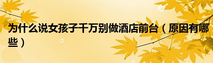 大家好,乐儿来为大家解答以下问题,为什么说女孩子千万别做酒店前台,原因有哪些很多人还不知道,现在让我们一起来看看吧!