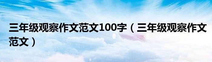 关于三年级观察作文范文100字,三年级观察作文范文这个很多人还不知道,今天菲菲来为大家解答以上的问题,现在让我们一起来看看吧!