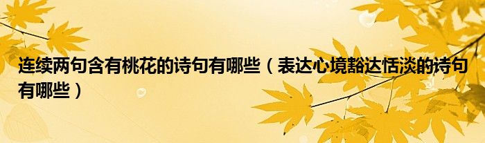 大家好,乐儿来为大家解答以下问题,连续两句含有桃花的诗句有哪些,表达心境豁达恬淡的诗句有哪些很多人还不知道,现在让我们一起来看看吧!