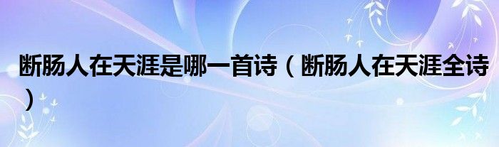 关于断肠人在天涯是哪一首诗,断肠人在天涯全诗这个很多人还不知道,今天菲菲来为大家解答以上的问题,现在让我们一起来看看吧!