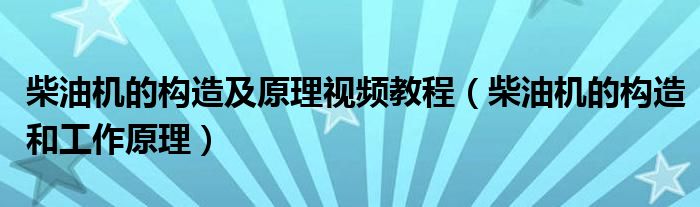 大家好,乐儿来为大家解答以下问题,柴油机的构造及原理视频教程,柴油机的构造和工作原理很多人还不知道,现在让我们一起来看看吧!