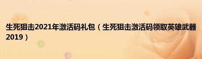 关于生死狙击2021年激活码礼包,生死狙击激活码领取英雄武器2019这个很多人还不知道,今天菲菲来为大家解答以上的问题,现在让我们一起来看看吧!