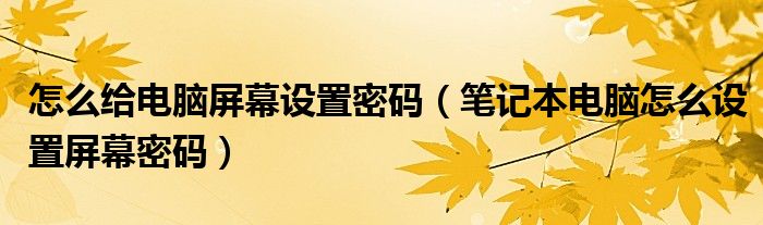 怎么给电脑屏幕设置密码(笔记本电脑怎么设置屏幕密码)