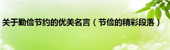 大家好,乐儿来为大家解答以下问题,关于勤俭节约的优美名言,节俭的精彩段落很多人还不知道,现在让我们一起来看看吧!