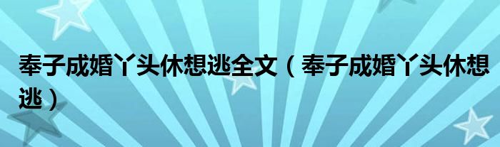 大家好,小联来为大家解答以上的问题。奉子成婚丫头休想逃全文,奉子成婚丫头休想逃这个很多人还不知道,现在让我们一起来看看吧!