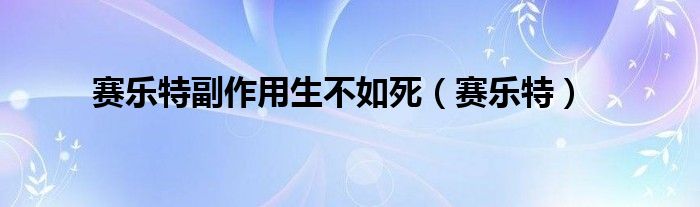 大家好,小联来为大家解答以上的问题。赛乐特副作用生不如死,赛乐特这个很多人还不知道,现在让我们一起来看看吧!