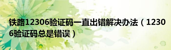 关于铁路12306验证码一直出错解决办法,12306验证码总是错误这个很多人还不知道,今天菲菲来为大家解答以上的问题,现在让我们一起来看看吧!