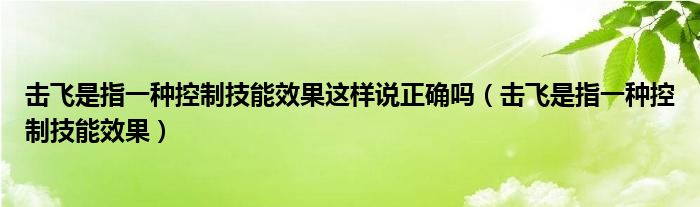 关于击飞是指一种控制技能效果这样说正确吗,击飞是指一种控制技能效果这个很多人还不知道,今天菲菲来为大家解答以上的问题,现在让我们一起来看看吧!