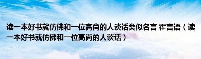 大家好,小联来为大家解答以上的问题。读一本好书就仿佛和一位高尚的人谈话类似名言 霍言语,读一本好书就仿佛和一位高尚的人谈话这个很多人还不知道,现在让我们一起来看看吧!