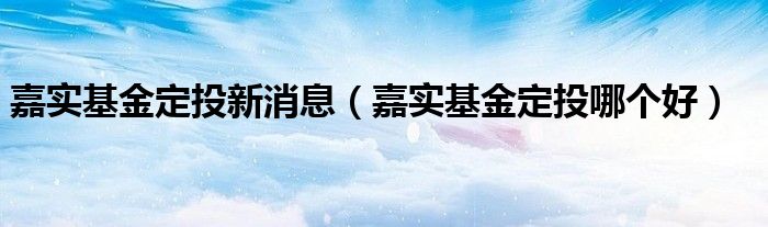 大家好,小联来为大家解答以上的问题。嘉实基金定投新消息,嘉实基金定投哪个好这个很多人还不知道,现在让我们一起来看看吧!