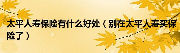 大家好,我是小科,我来为大家解答以上问题。太平人寿保险有什么好处,别在太平人寿买保险了很多人还不知道,现在让我们一起来看看吧!