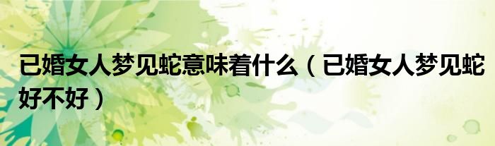 已婚女人梦见蛇意味着什么(已婚女人梦见蛇好不好)