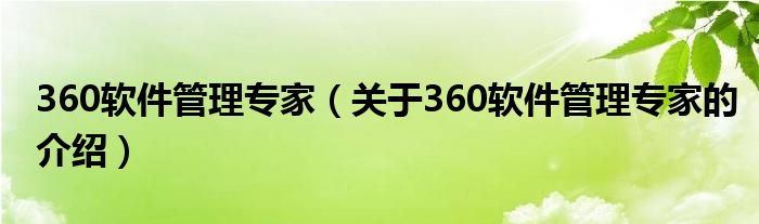 360软件管理专家(关于360软件管理专家的介绍)