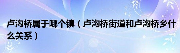 大家好,小夏来为大家讲解下。卢沟桥属于哪个镇,卢沟桥街道和卢沟桥乡什么关系很多人还不知道,现在让我们一起来看看吧!