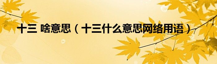 大家好,我是小科,我来为大家解答以上问题。十三 啥意思,十三什么意思网络用语很多人还不知道,现在让我们一起来看看吧!