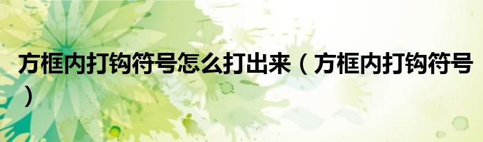 今天小饼为大家解答以下问题,关于方框内打钩符号怎么打出来,方框内打钩符号很多人还不知道,现在让我们一起来看看吧!