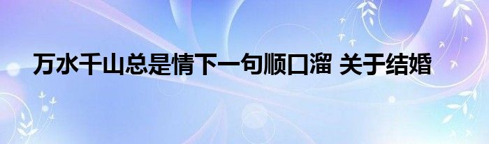 大家好,小华来为大家解答以上的问题。万水千山总是情下一句顺口溜 关于结婚这个很多人还不知道,现在让我们一起来看看吧!