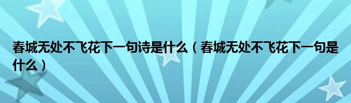 大家好,小虎来为大家讲解下。春城无处不飞花下一句诗是什么,春城无处不飞花下一句是什么很多人还不知道,现在让我们一起来看看吧!