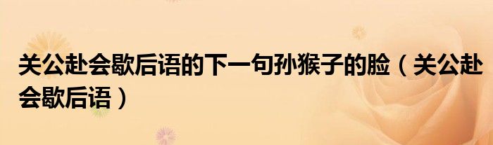 大家好,小晋来为大家解答以下问题,关于关公赴会歇后语的下一句孙猴子的脸,关公赴会歇后语很多人还不知道,今天让我们一起来看看吧!