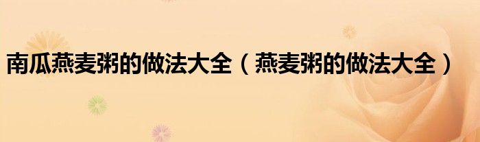 南瓜燕麦粥的做法大全(燕麦粥的做法大全)