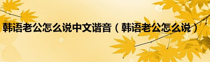 韩语老公怎么说中文谐音(韩语老公怎么说)