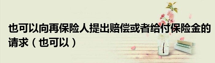大家好,我是小科,我来为大家解答以上问题。也可以向再保险人提出赔偿或者给付保险金的请求,也可以很多人还不知道,现在让我们一起来看看吧!